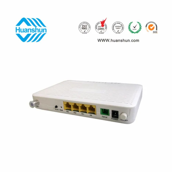 HSOS11176GNW | xPON ONU, PON端口接入,1GE+3FE網(wǎng)絡(luò)接口,2*2 2.4G WIFI(內(nèi)置天線300m),CATV1540~1565nm -5~-15dBm inport/RFMD76dBuv恒定輸出,網(wǎng)絡(luò)管理監(jiān)控光接收功率,RF輸出電平,RF on / off,通過(guò)內(nèi)置WDM-PON xPON1310/1490nm1~4dBmTX,-28dBmRX連接到xEPON;外置90~255V-12V 1A電源適配器 | |
